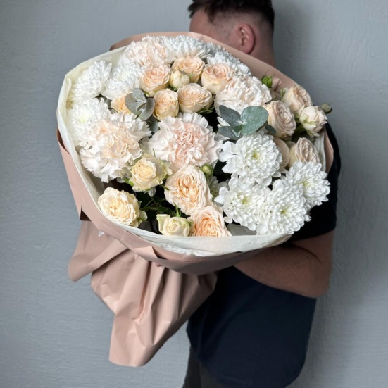 Букет из пионовидных роз и хризантем в Чехове