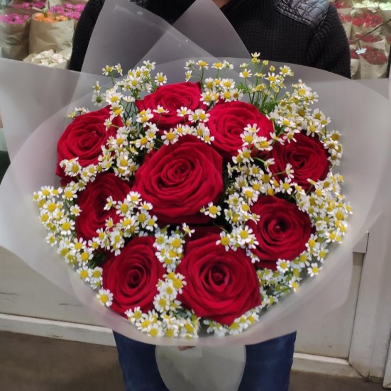 Заказывала большой букет роз-довольна. Пышный, яркий, крепкие цветы-денег своих стоит.